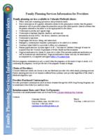 - Family planning services information for providers