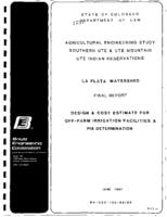 The purpose of this task report is to present the methodology for determining practicably irrigable acreage (PIA) for the La Plata Watershed. The test for PIA requires that the revenues exceed the cost. The land under consideration when cropped and irrigated must return sufficient net positive income to pay for the costs of providing irrigation water to the farm headgate In order to determine PIA it is necessary to conceptually design an irrigation transmission system to deliver water to the farm headgate for each arable parcel. The annualized cost of the off farm irrigation water transmission system is compared to the net positive income payment capacity of the parcel., Report research sponsored by the State of Colorado Department of Law., "June 1987.", Online resource lacks sheets of maps., Online resource; title from PDF cover (viewed September 2017), BK-C22-100-04/05