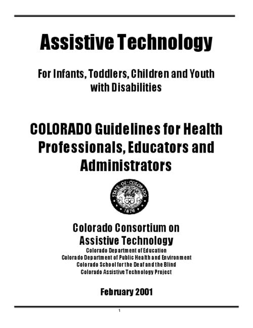 Assistive technology for infants, toddlers, children and youth with disabilities : Colorado guidelines for health professionals, educators and administrators