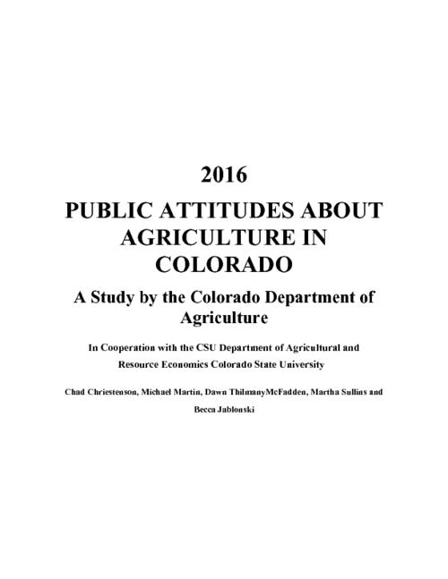 a study by the Colorado Department of Agriculture in cooperation with the CSU Department of Agricultural and Resource Economics, Colorado State University ; Chad Chriestenson, Michael Martin, Dawn Thilmany McFadden, Martha Sullins, and Becca Jablonski.