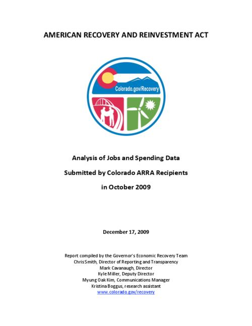 American Recovery an Reinvestment Act : analysis of jobs and spending data submitted by Colorado ARRA recipients in October 2009